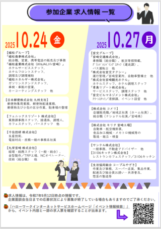 主催労働局・ハローワーク | 宮崎労働局 宮崎公共職業安定所 |