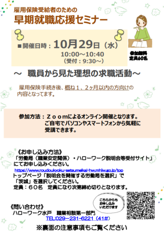 ※ハローワーク水戸をご利用の方向けのセミナーとなっております。