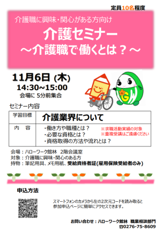 | 説明会名 | 介護セミナー ~介護職で働くとは?~ |