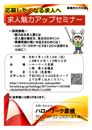 応募したくなる求人へ 求人魅力アップセミナー