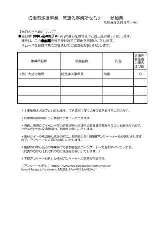 | 説明会名 | 労働者派遣事業 派遣先事業所セミナー |