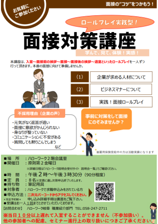 | 主催労働局・ハローワーク | 岐阜労働局 岐阜公共職業安定所 |