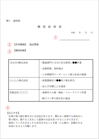 【職務経歴書(警備)】