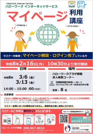 | 会場 | ハローワークプラザ那覇 求人検索コーナー 〒900-0021 沖縄県那覇市泉崎1-20-1 6F |