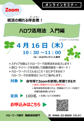 4月16日 10時30分  「ハロワ活用法~入門編~」