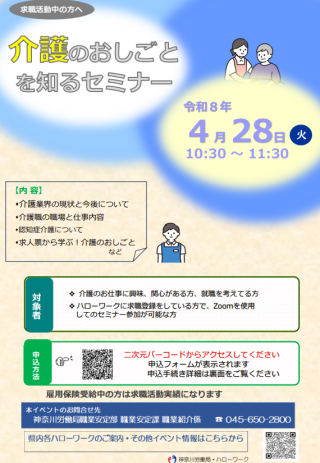 | 説明会名 | 介護のおしごとを知るセミナー~今だからはじめる介護の仕事 |
