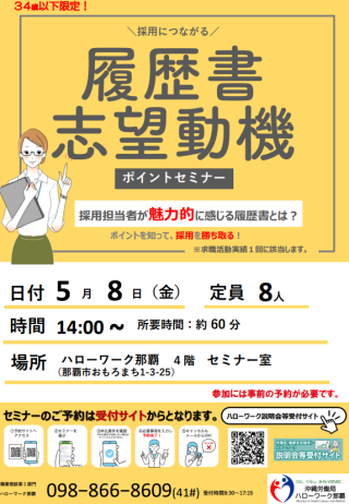 | 会場 | ハローワーク那覇4階 セミナー室 那覇市おもろまち1-3-25 |