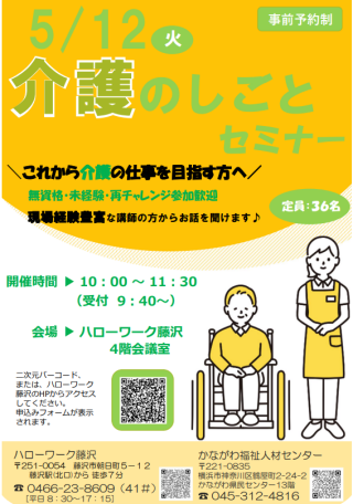| 説明会名 | 5/12(火)開催 介護のしごとセミナー |