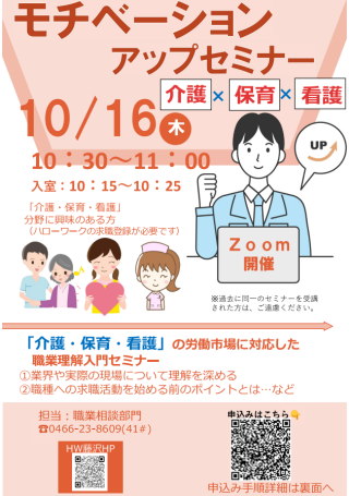 説明会名 | 10/16モチベーションアップセミナー(介護・保育・看護分野) |
